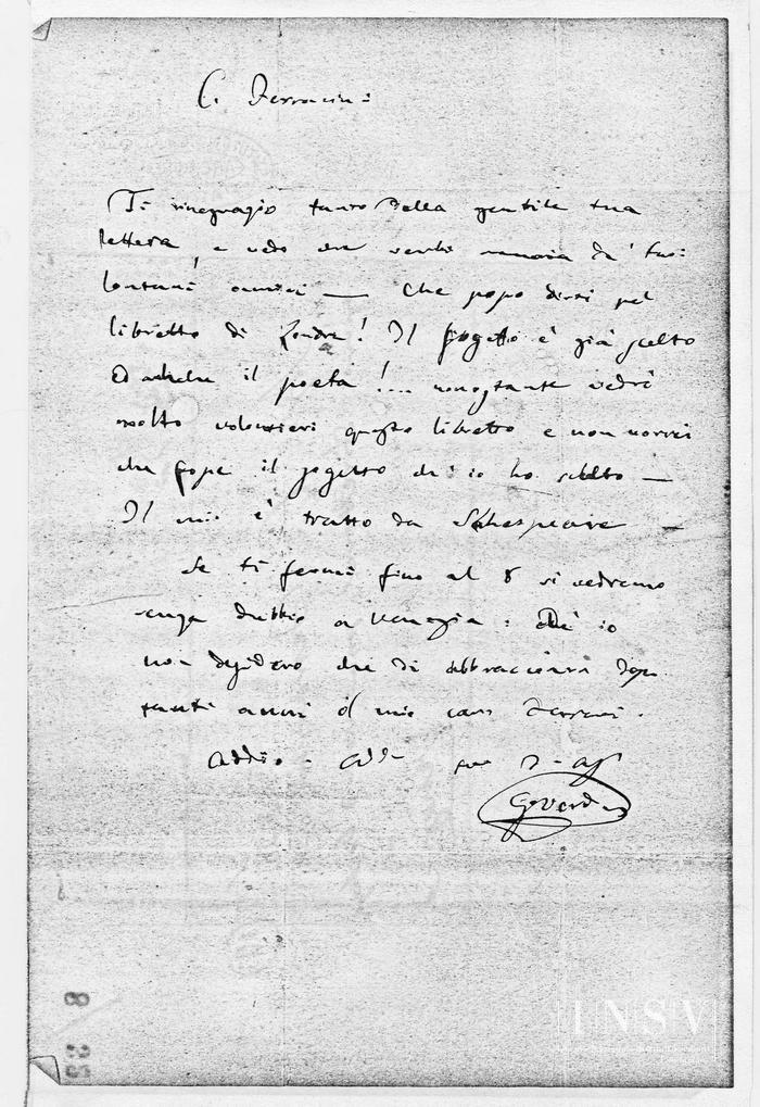 Corrispondenza Giuseppe Verdi a Giovannina Strazza Lucca, 24/02/1846 Venezia, 24 febbraio 1846 read Giuseppe Verdi a Giovannina Strazza Lucca, 24/02/1846