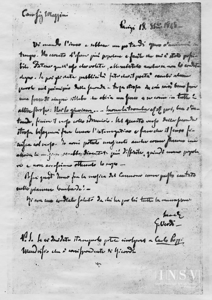Corrispondenza Giuseppe Verdi a Giuseppe Mazzini, 18/10/1848 Parigi, 18 ottobre 1848 read Giuseppe Verdi a Giuseppe Mazzini, 18/10/1848