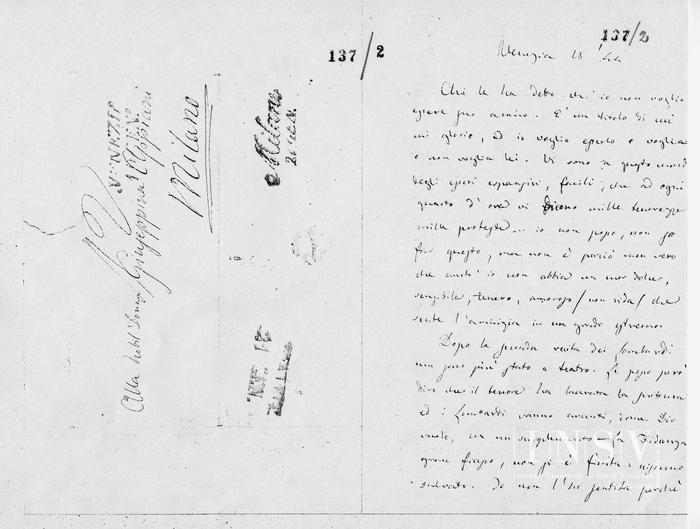 Corrispondenza Giuseppe Verdi a Giuseppina Appiani, 12/12/1843 Venezia, 12 dicembre 1843 read Giuseppe Verdi a Giuseppina Appiani, 12/12/1843