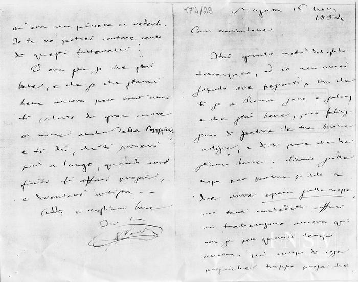 Corrispondenza Giuseppe Verdi a Opprandino Arrivabene, 16/11/1884 Sant'Agata, 16 novembre 1884 read Giuseppe Verdi a Opprandino Arrivabene, 16/11/1884