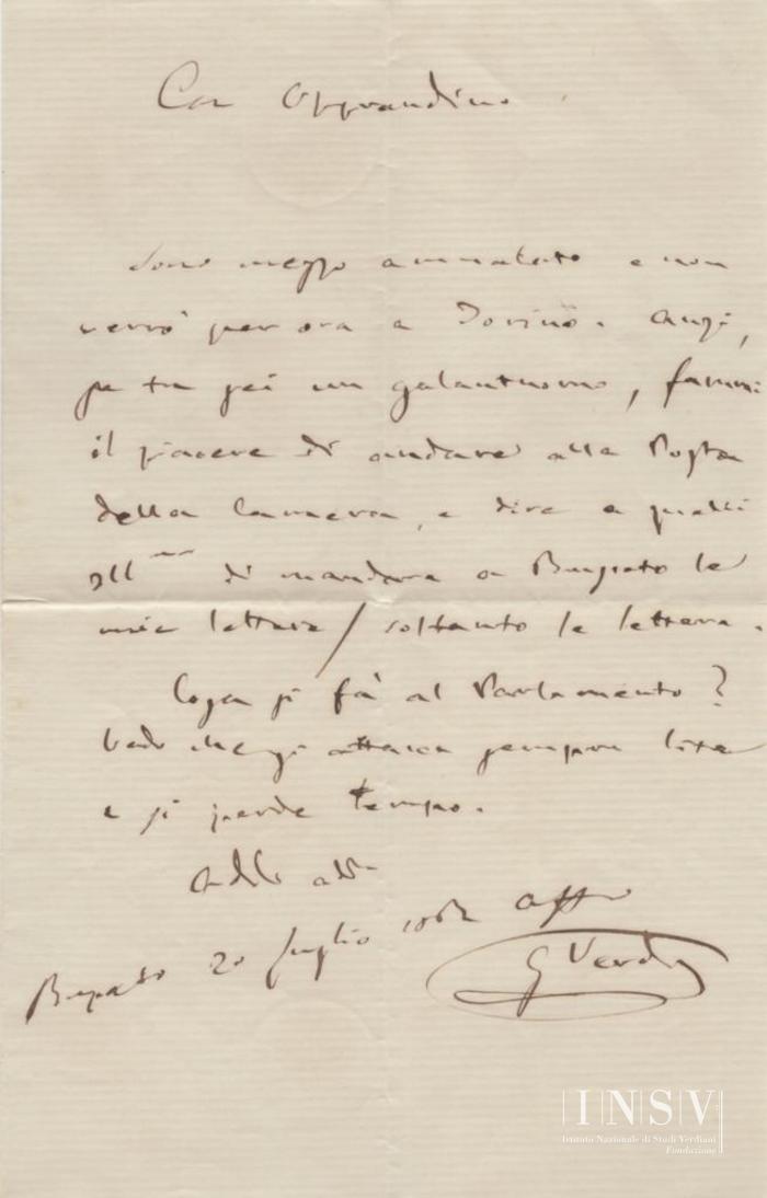 Corrispondenza Giuseppe Verdi a Opprandino Arrivabene, 20/07/1862 Busseto, 20 luglio 1862 read Giuseppe Verdi a Opprandino Arrivabene, 20/07/1862