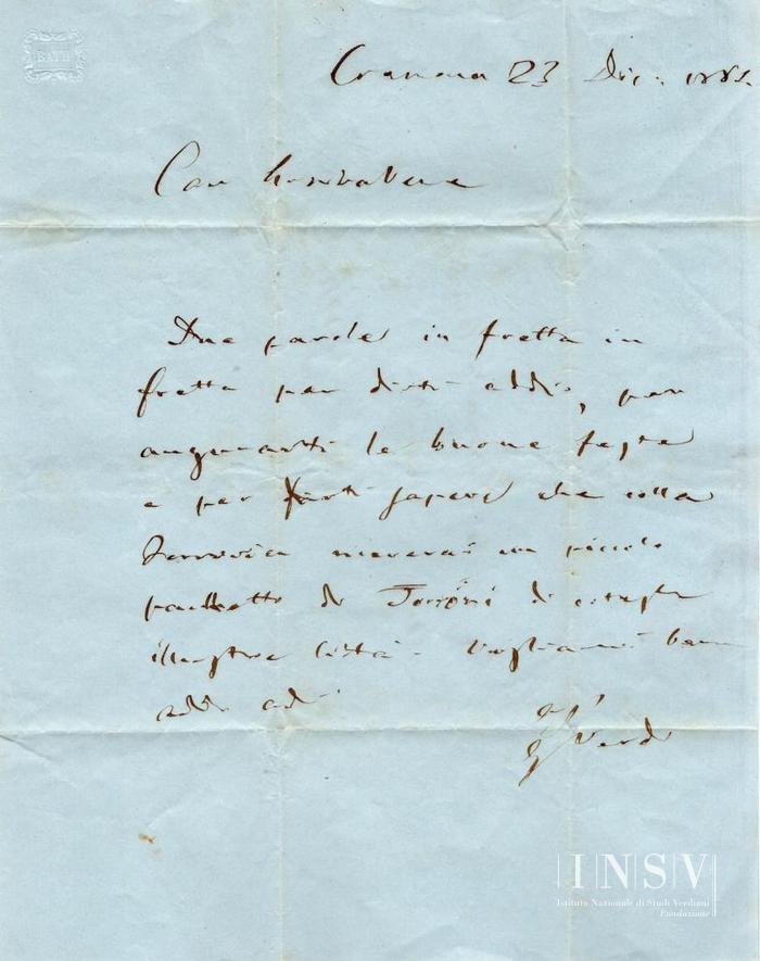 Corrispondenza Giuseppe Verdi a Opprandino Arrivabene, 23/12/1864 Cremona, 23 dicembre 1864 read Giuseppe Verdi a Opprandino Arrivabene, 23/12/1864
