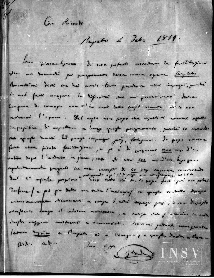 Corrispondenza Giuseppe Verdi a Giovanni Ricordi, 04/02/1851 Busseto, 4 febbraio 1851 read Giuseppe Verdi a Giovanni Ricordi, 04/02/1851