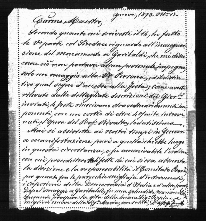 Corrispondenza Giuseppe De Amicis a Giuseppe Verdi, 17/10/1893 Genova, 17 ottobre 1893 read Giuseppe De Amicis a Giuseppe Verdi, 17/10/1893