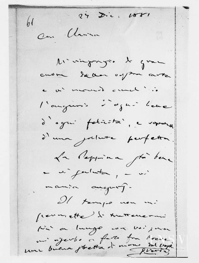 Corrispondenza Giuseppe Verdi a Clara Maffei, 27/12/1881 [Genova], 27 dicembre 1881 read Giuseppe Verdi a Clara Maffei, 27/12/1881