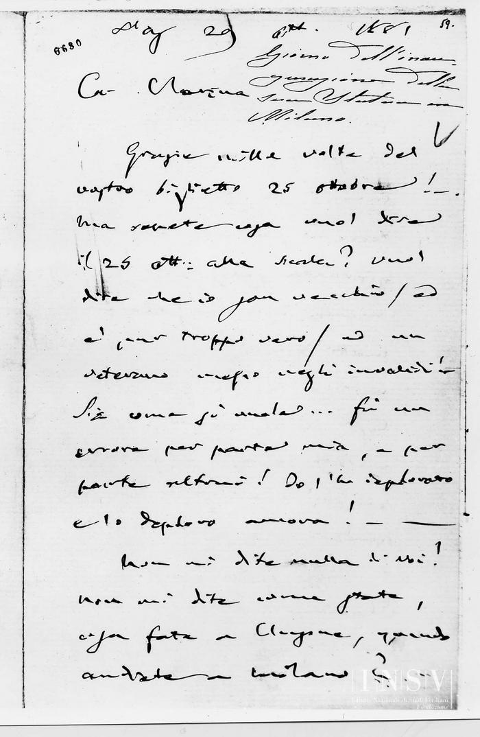 Corrispondenza Giuseppe Verdi a Clara Maffei, 29/10/1881 Sant'Agata, 29 ottobre 1881 read Giuseppe Verdi a Clara Maffei, 29/10/1881