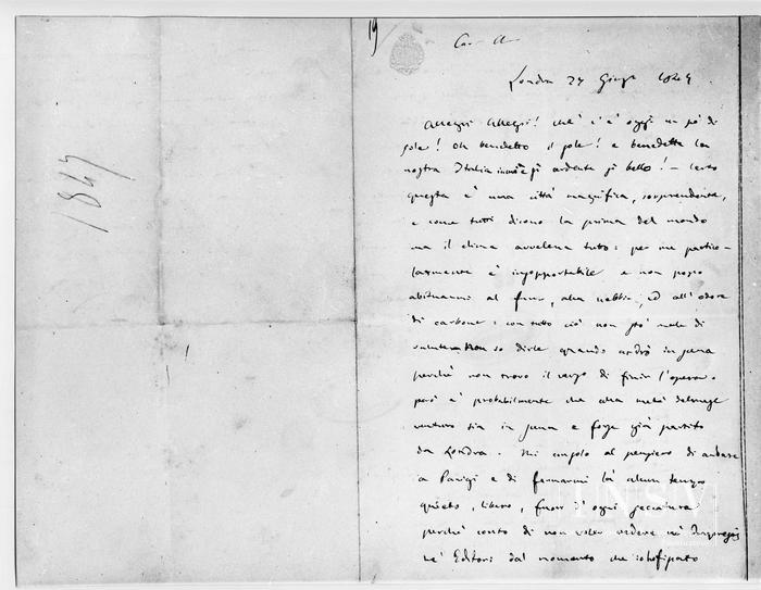 Corrispondenza Giuseppe Verdi a Clara Maffei, 24/06/1846 Milano, 24 giugno 1846 read Giuseppe Verdi a Clara Maffei, 24/06/1846