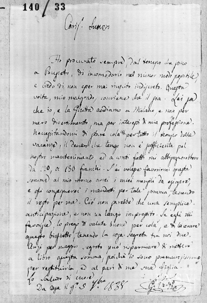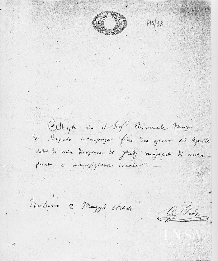 Corrispondenza Giuseppe Verdi a Antonio Barezzi, 06/10/1838 Milano, 6 ottobre 1838 read Giuseppe Verdi a Antonio Barezzi, 06/10/1838