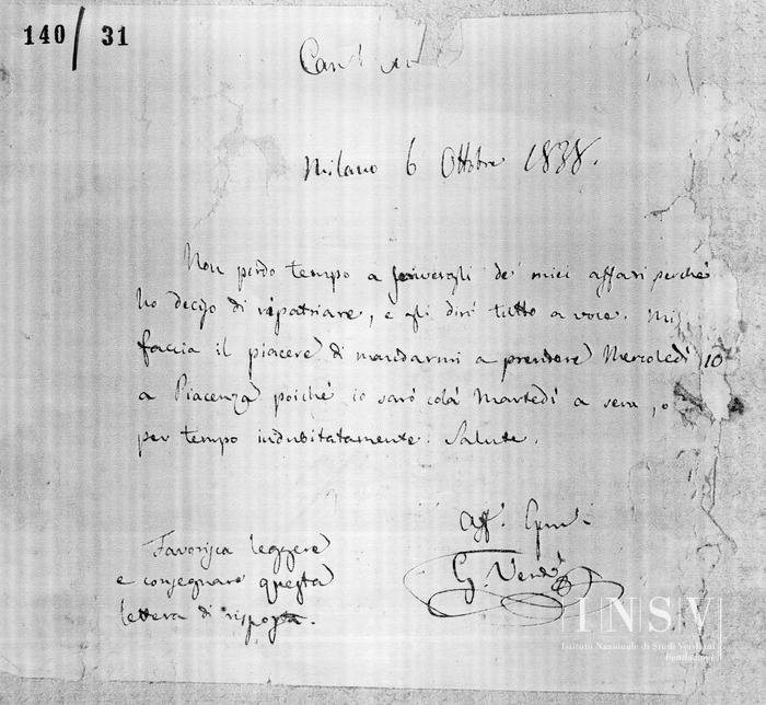 Corrispondenza Giuseppe Verdi a Antonio Ghislanzoni, 07/02/1887 Milano, 7 febbraio 1887 read Giuseppe Verdi a Antonio Ghislanzoni, 07/02/1887