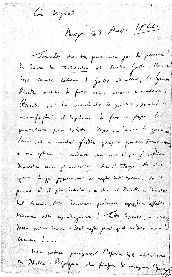 Corrispondenza Giuseppe Verdi a Cesare Vigna, 23/03/1854 Parigi, 23 marzo 1854 read Giuseppe Verdi a Cesare Vigna, 23/03/1854