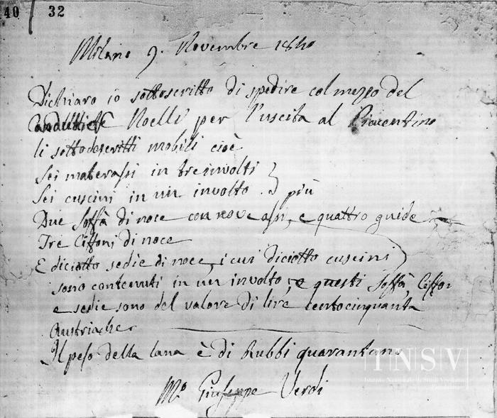 Corrispondenza Giuseppe Verdi a Dogana di Piacenza, 09/11/1840 Milano, 9 novembre 1840 read Giuseppe Verdi a Dogana di Piacenza, 09/11/1840