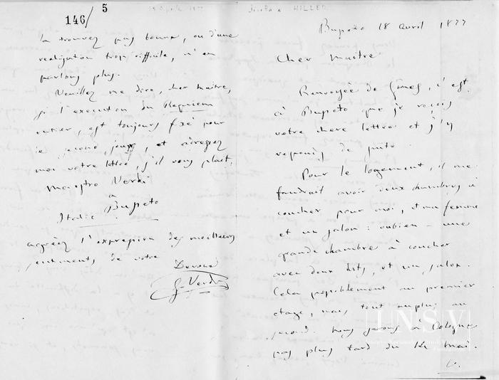 Corrispondenza Giuseppe Verdi a Ferdinand Hiller, 18/04/1877 Busseto, 18 aprile 1877 read Giuseppe Verdi a Ferdinand Hiller, 18/04/1877