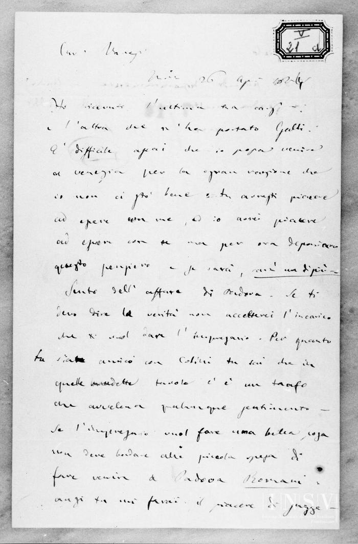Corrispondenza Giuseppe Verdi a Felice Varesi, 26/04/1847 [Milano,] 26 aprile 1847 read Giuseppe Verdi a Felice Varesi, 26/04/1847