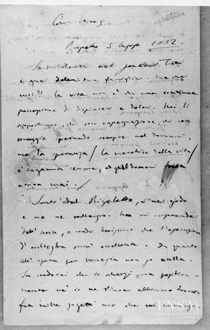 Corrispondenza Giuseppe Verdi a Felice Varesi, 05/08/1852 Busseto, 5 agosto 1852 read Giuseppe Verdi a Felice Varesi, 05/08/1852