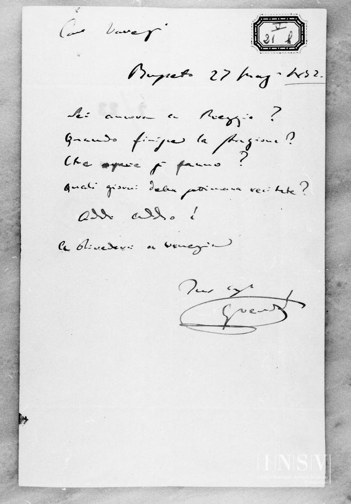 Corrispondenza Giuseppe Verdi a Eugenio Tornaghi, 27/12/1889 Genova, 27 dicembre 1889 read Giuseppe Verdi a Eugenio Tornaghi, 27/12/1889