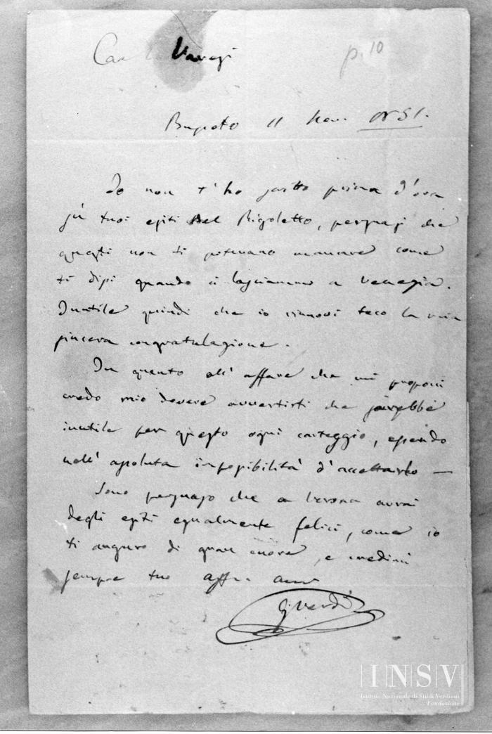 Corrispondenza Giuseppe Verdi a Felice Varesi, 11/11/1851 Busseto, 11 novembre 1851 read Giuseppe Verdi a Felice Varesi, 11/11/1851
