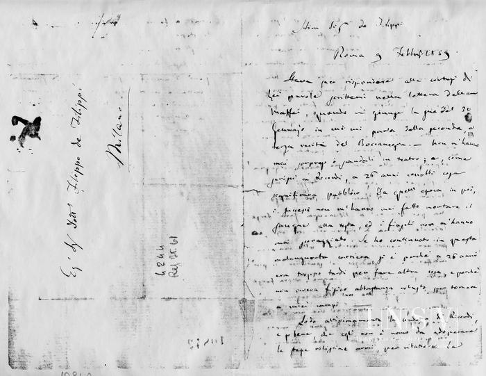 Corrispondenza Giuseppe Verdi a Filippo Filippi, 09/02/1859 Roma, 9 febbraio 1859 read Giuseppe Verdi a Filippo Filippi, 09/02/1859