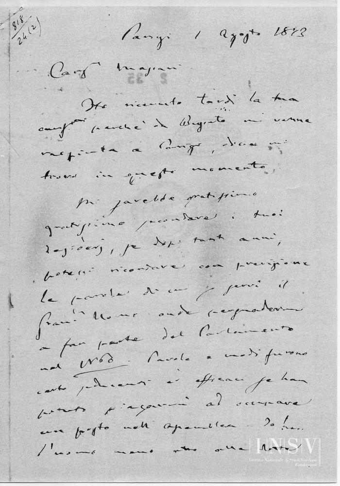 Corrispondenza Giuseppe Verdi a Giuseppe Massari, 01/08/1873 Parigi, 1 agosto 1873 read Giuseppe Verdi a Giuseppe Massari, 01/08/1873