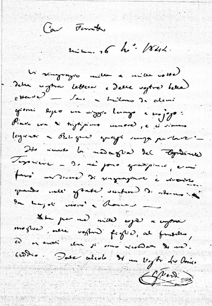 Corrispondenza Giuseppe Verdi a Jacopo Ferretti, 26/11/1844 Milano, 26 novembre 1844 read Giuseppe Verdi a Jacopo Ferretti, 26/11/1844