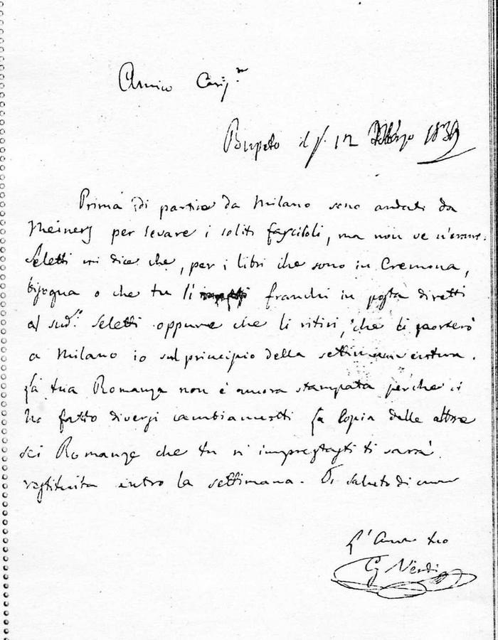 Corrispondenza Giuseppe Verdi a Luigi Balestra, 12/03/1839 Busseto, 12 marzo 1839 read Giuseppe Verdi a Luigi Balestra, 12/03/1839