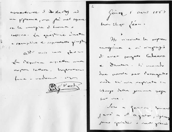 Corrispondenza Giuseppe Verdi a Léon Escudier, 01/04/1867 Genova, 1 aprile 1867 read Giuseppe Verdi a Léon Escudier, 01/04/1867