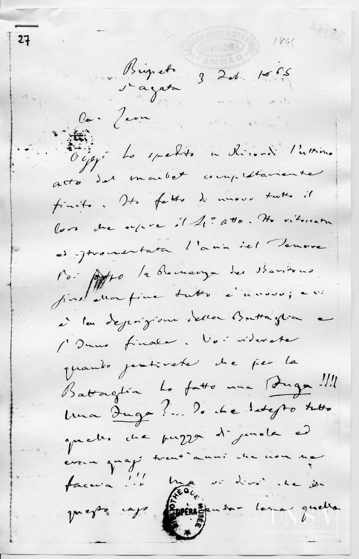 Corrispondenza Giuseppe Verdi a Léon Escudier, 03/02/1865 Sant'Agata, 3 febbraio 1865 read Giuseppe Verdi a Léon Escudier, 03/02/1865