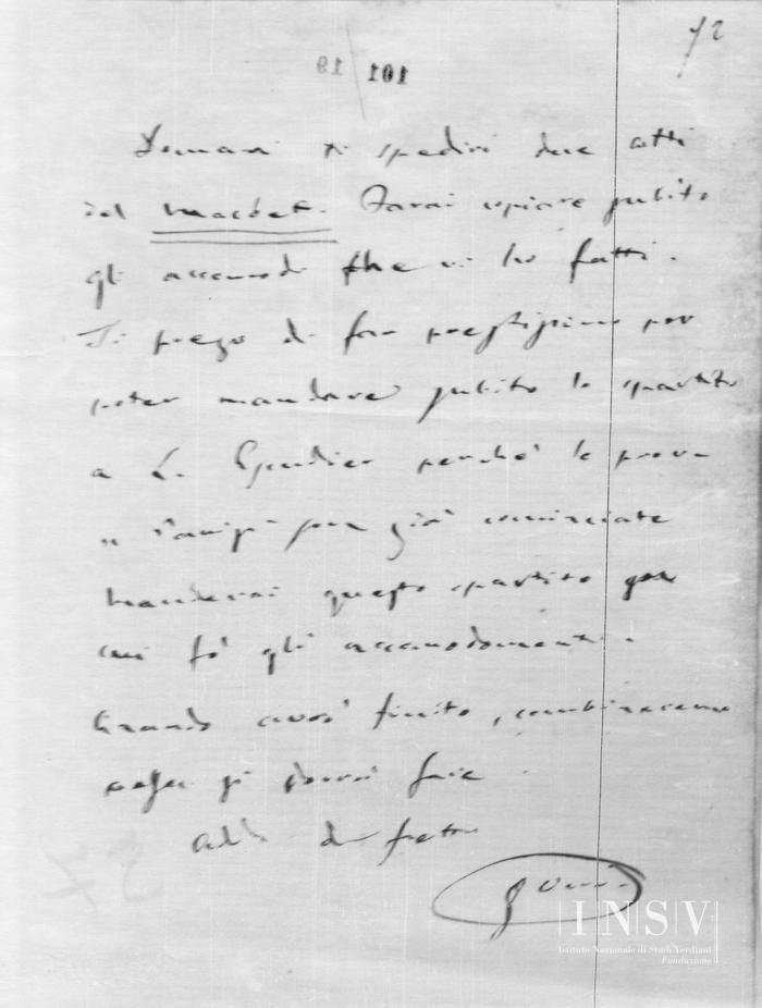 Corrispondenza Giuseppe Verdi a Tito I Ricordi, 02/12/1886 [Busseto, 2 dicembre 1886] read Giuseppe Verdi a Tito I Ricordi, 02/12/1886