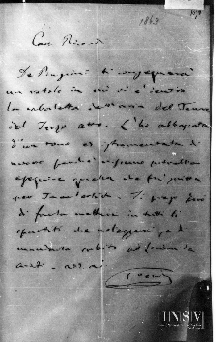 Corrispondenza Giuseppe Verdi a Tito I Ricordi, 04/1863 [Parigi], aprile 1863 read Giuseppe Verdi a Tito I Ricordi, 04/1863