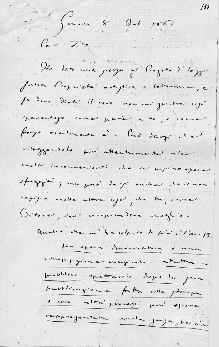Corrispondenza Giuseppe Verdi a Tito I Ricordi, 06/01/1883 Genova, 6 gennaio 1883 read Giuseppe Verdi a Tito I Ricordi, 06/01/1883