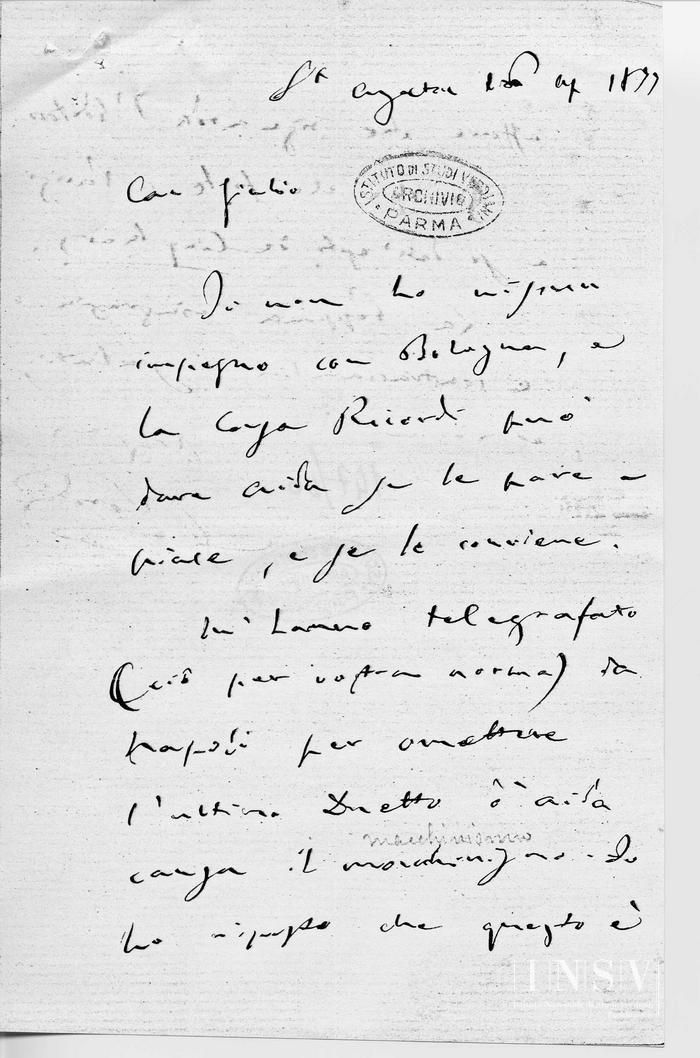 Corrispondenza Giuseppe Verdi a Tito I Ricordi, 16/04/1877 Sant'Agata, 16 agosto 1877 read Giuseppe Verdi a Tito I Ricordi, 16/04/1877