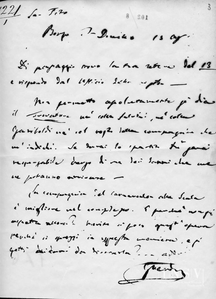 Corrispondenza Giuseppe Verdi a Tito I Ricordi, 15/08/1853 Borgo San Donnino, 15 agosto 1853 read Giuseppe Verdi a Tito I Ricordi, 15/08/1853