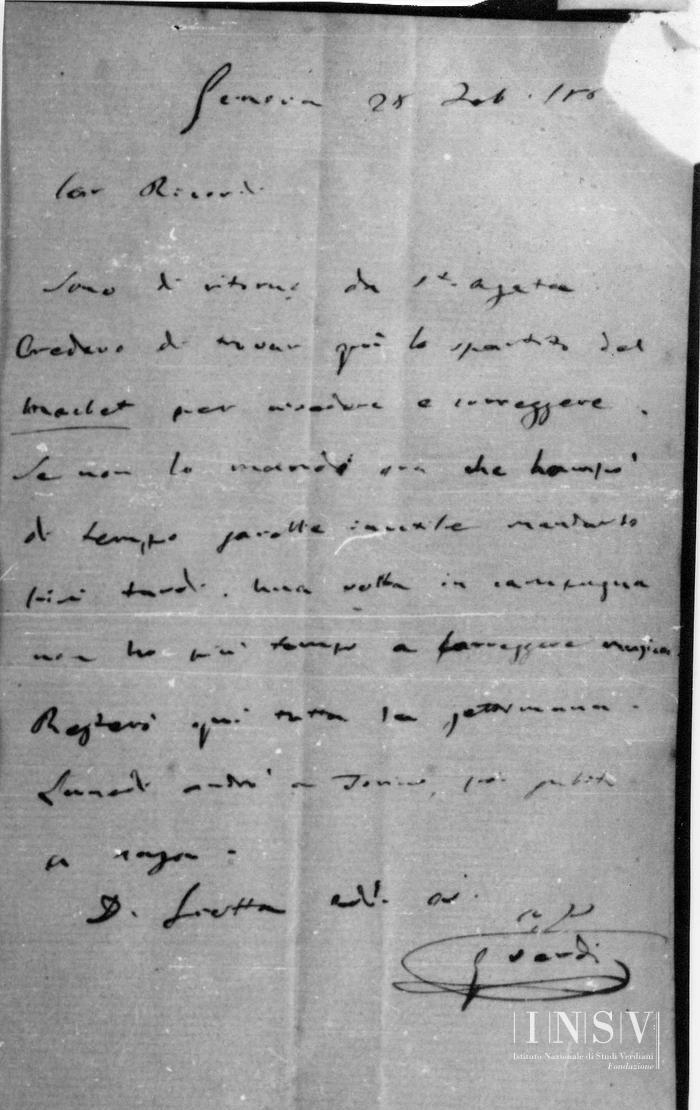 Corrispondenza Giuseppe Verdi a Tito I Ricordi, 28/02/1865 Genova, 28 febbraio 1865 read Giuseppe Verdi a Tito I Ricordi, 28/02/1865
