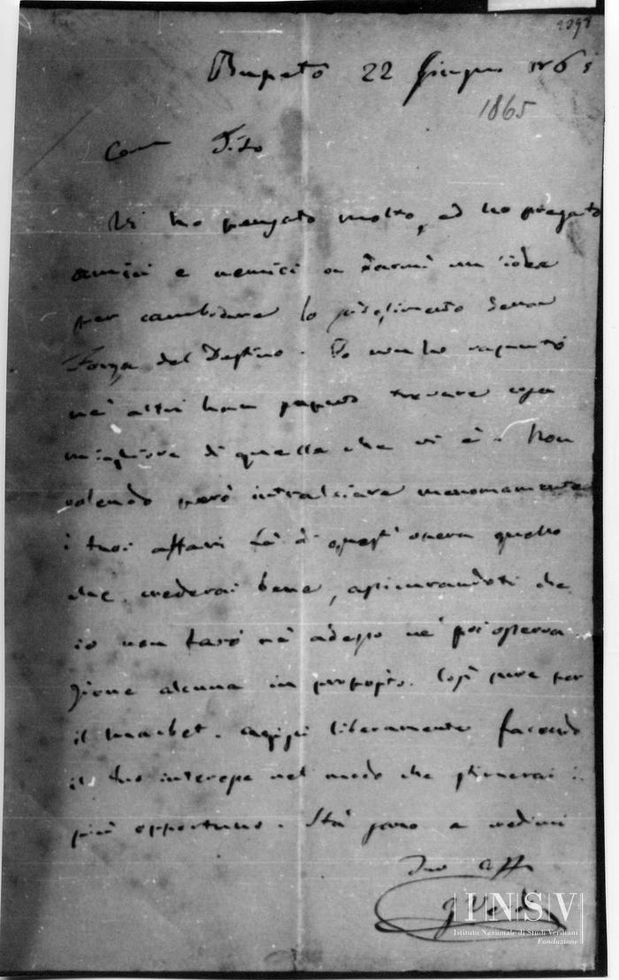 Corrispondenza Giuseppe Verdi a Tito I Ricordi, 22/06/1865 Sant'Agata, 22 giugno 1865 read Giuseppe Verdi a Tito I Ricordi, 22/06/1865