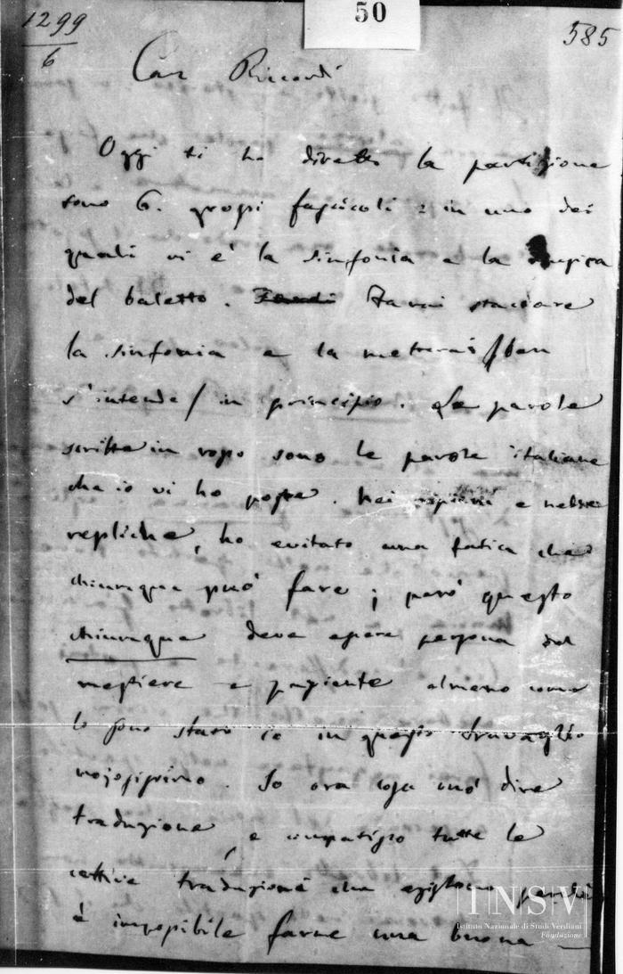 Corrispondenza Giuseppe Verdi a Tito I Ricordi, 10/01/1885 Genova, 10 gennaio 1885 read Giuseppe Verdi a Tito I Ricordi, 10/01/1885