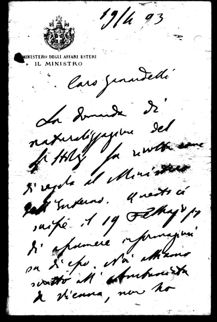 Corrispondenza Benedetto Brin a Giuseppe Zanardelli, 19/04/1893 [Roma], 19 aprile 1893 read Benedetto Brin a Giuseppe Zanardelli, 19/04/1893