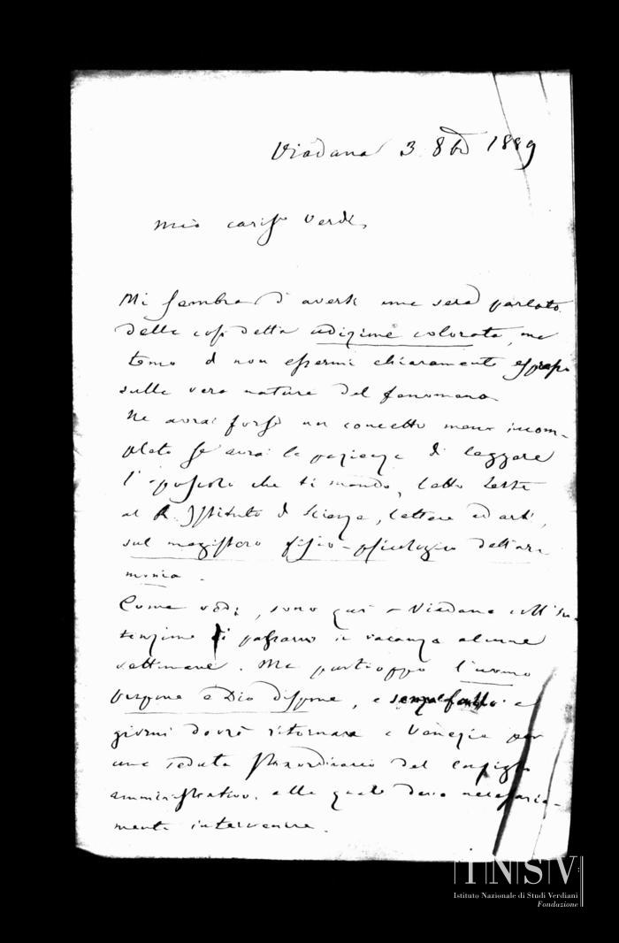 Corrispondenza Cesare Vigna a Giuseppe Verdi, 03/10/1889 Viadana, 3 ottobre 1889 read Cesare Vigna a Giuseppe Verdi, 03/10/1889