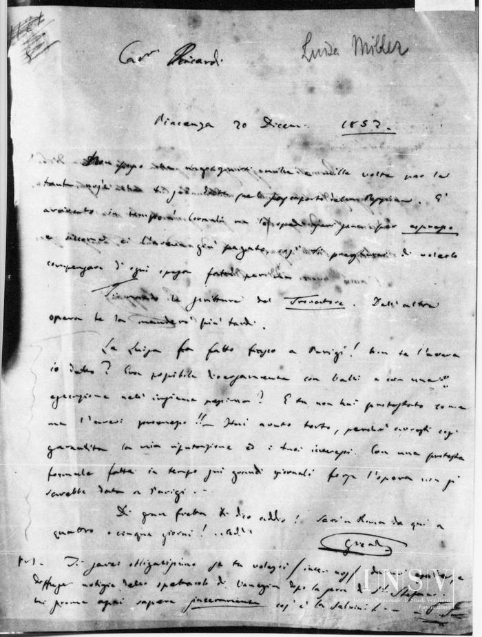Corrispondenza Giuseppe Verdi e Giuseppina Strepponi a Giovanni Ricordi, 20/12/1852 Piacenza, 20 dicembre 1852 read Giuseppe Verdi e Giuseppina Strepponi a Giovanni Ricordi, 20/12/1852
