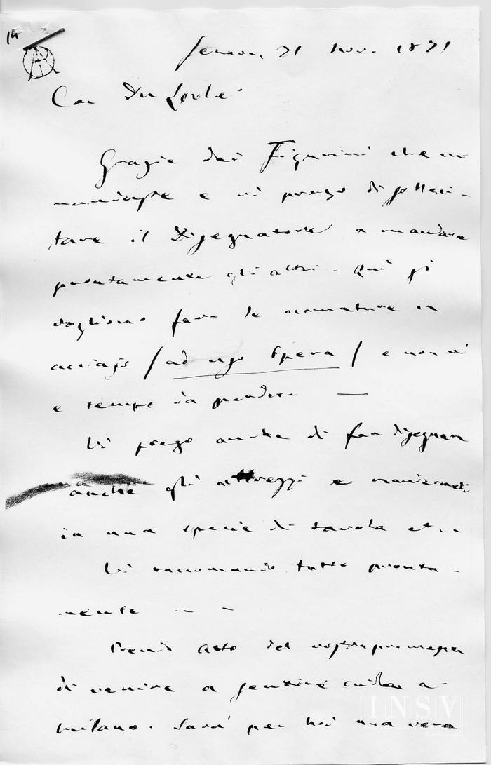 Corrispondenza Giuseppe Verdi a Camille Du Locle, 21/11/1871 Genova, 21 novembre 1871 read Giuseppe Verdi a Camille Du Locle, 21/11/1871