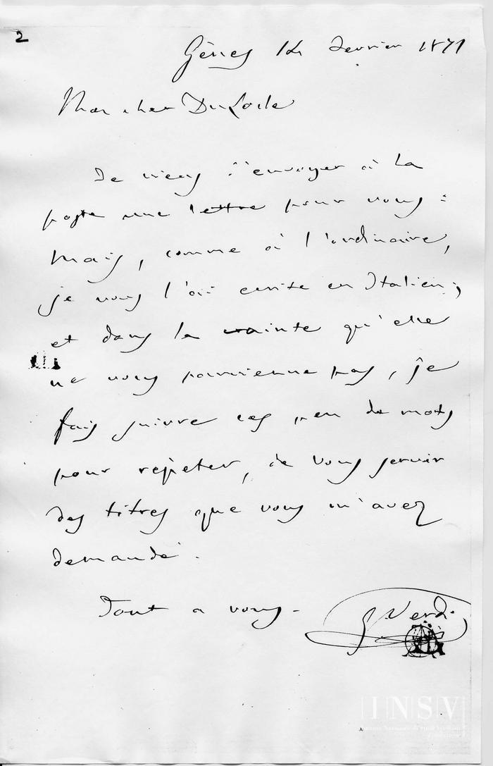 Corrispondenza Giuseppe Verdi a Camille Du Locle, 14/02/1871 Gênes 14 Fevrier 1871 read Giuseppe Verdi a Camille Du Locle, 14/02/1871