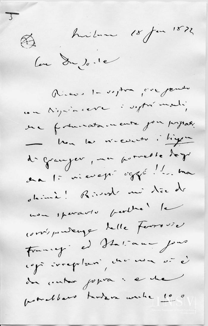 Corrispondenza Giuseppe Verdi a Camille Du Locle, 18/01/1872 Milano, 18 gennaio 1872 read Giuseppe Verdi a Camille Du Locle, 18/01/1872