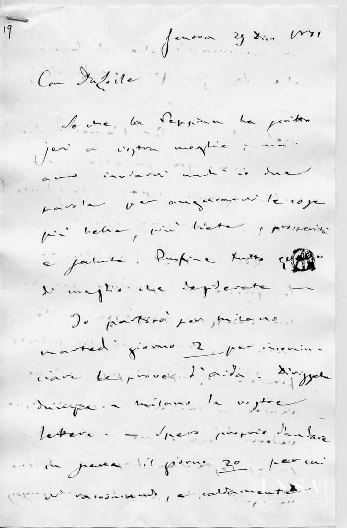 Corrispondenza Giuseppe Verdi a Camille Du Locle, 26/12/1874 Genova 26 Dic 1874 read Giuseppe Verdi a Camille Du Locle, 26/12/1874