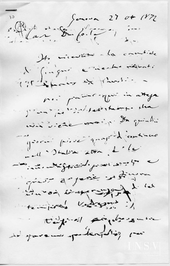 Corrispondenza Giuseppe Verdi a Camille Du Locle, 27/10/1872 Genova, 27 ottobre 1872 read Giuseppe Verdi a Camille Du Locle, 27/10/1872