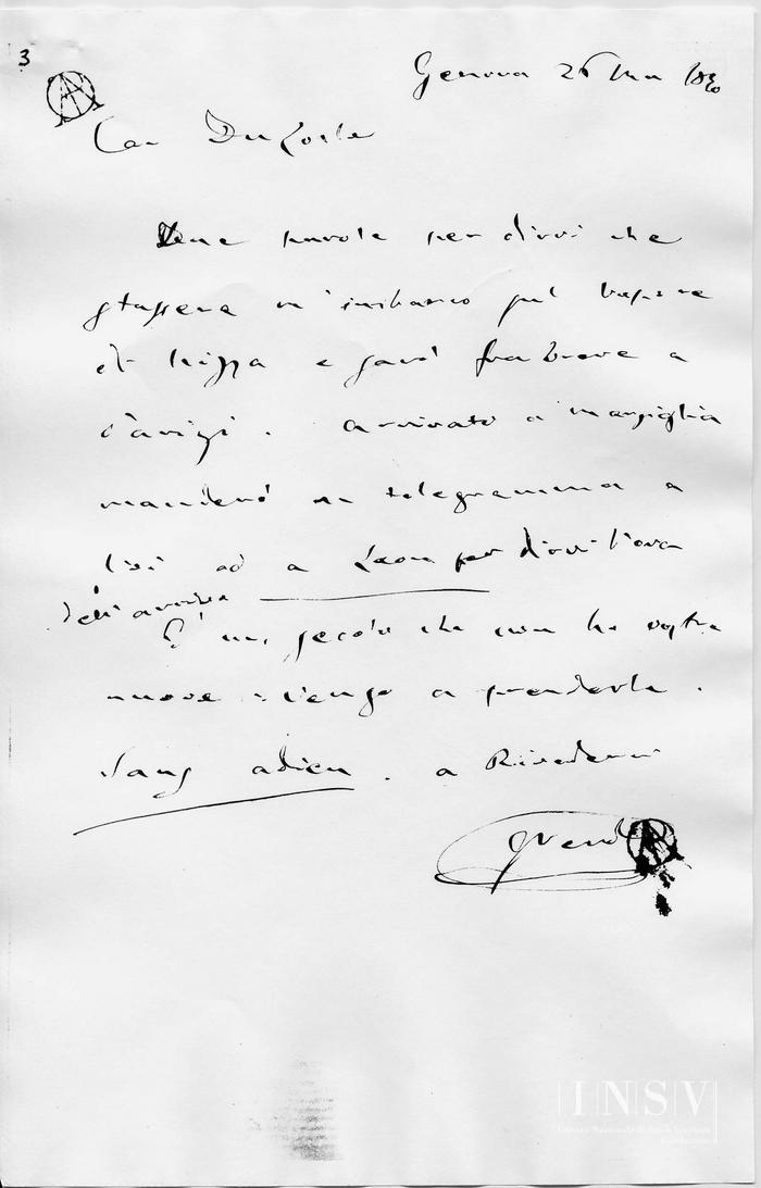 Corrispondenza Giuseppe Verdi a Camille Du Locle, 26/03/1870 Genova, 26 marzo 1870 read Giuseppe Verdi a Camille Du Locle, 26/03/1870