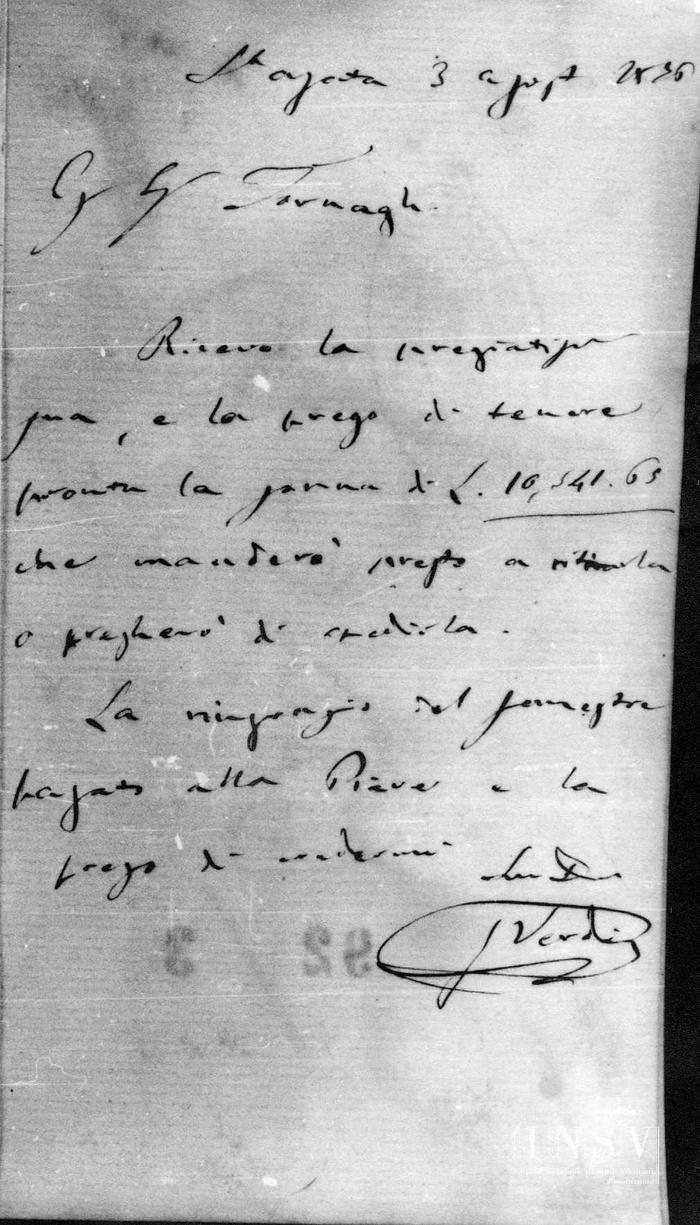 Corrispondenza Giuseppe Verdi a Eugenio Tornaghi, 03/08/1876 Sant'Agata, 3 agosto 1876 read Giuseppe Verdi a Eugenio Tornaghi, 03/08/1876