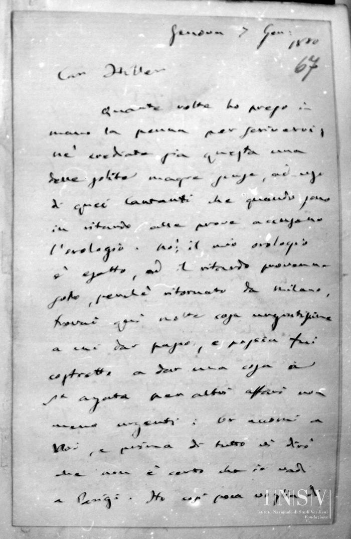 Corrispondenza Giuseppe Verdi a Ferdinand Hiller, 07/01/1880 Genova, 7 gennaio 1880 read Giuseppe Verdi a Ferdinand Hiller, 07/01/1880