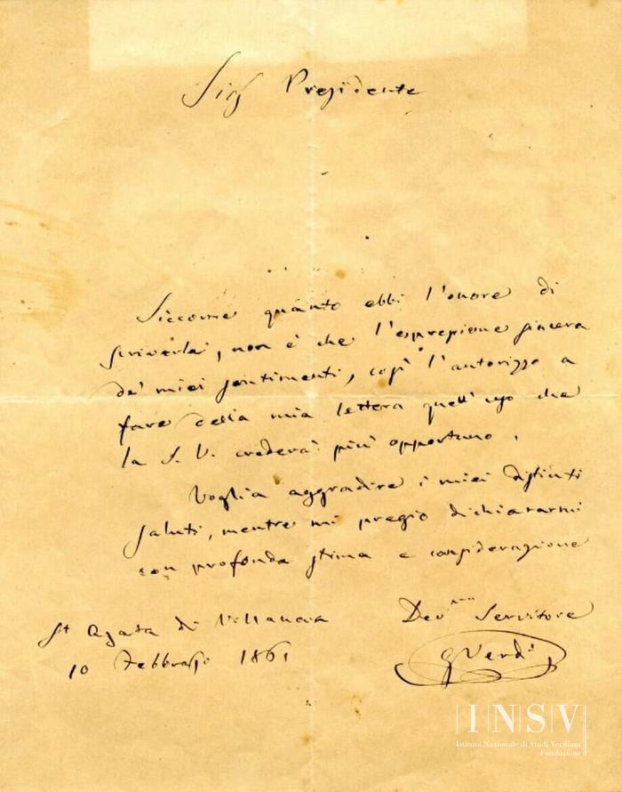 Corrispondenza Giuseppe Verdi a Giuseppe Chiarpa, 10/02/1861 Sant'Agata, 10 febbraio 1861 read Giuseppe Verdi a Giuseppe Chiarpa, 10/02/1861