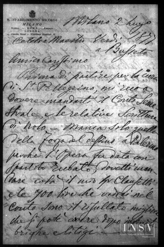 Corrispondenza Tito I Ricordi a Giuseppe Verdi, 02/07/1877 Milano, 2 luglio 1877 read Tito I Ricordi a Giuseppe Verdi, 02/07/1877