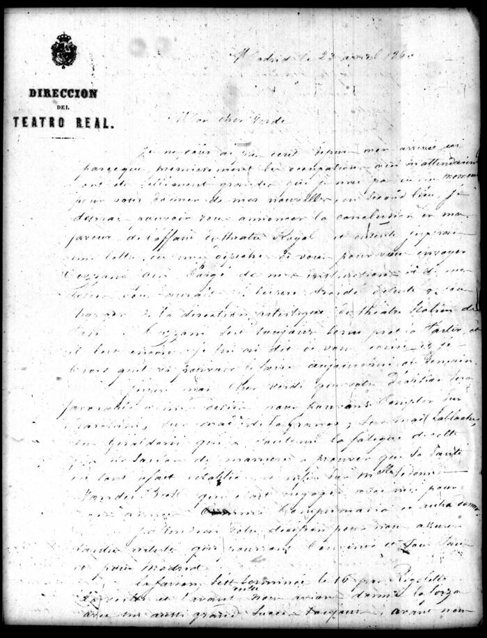 Corrispondenza Prosper Bagier a Giuseppe Verdi, 23/04/1863 Madrid, 23 aprile 1863 read Prosper Bagier a Giuseppe Verdi, 23/04/1863