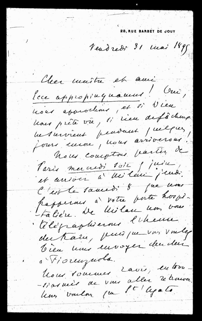 Corrispondenza Camille Bellaigue a Giuseppe Verdi, 31/05/1895 Parigi, 31 maggio 1895 read Camille Bellaigue a Giuseppe Verdi, 31/05/1895