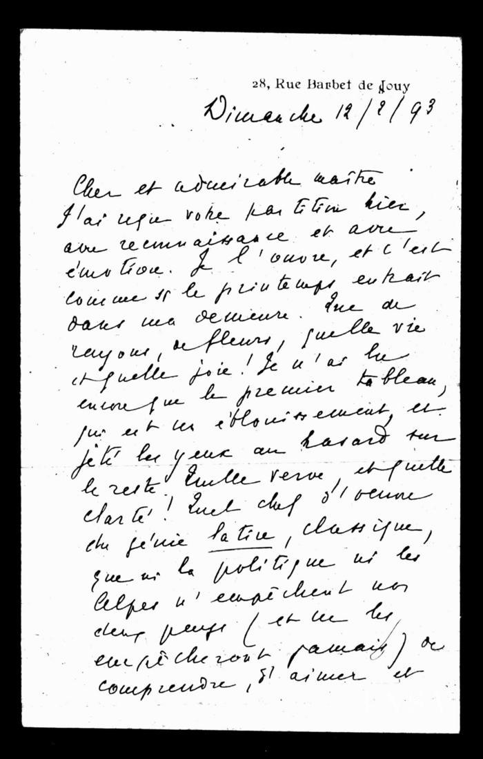 Corrispondenza Camille Bellaigue a Giuseppe Verdi, 12/02/1893 Parigi, 12 febbraio 1893 read Camille Bellaigue a Giuseppe Verdi, 12/02/1893